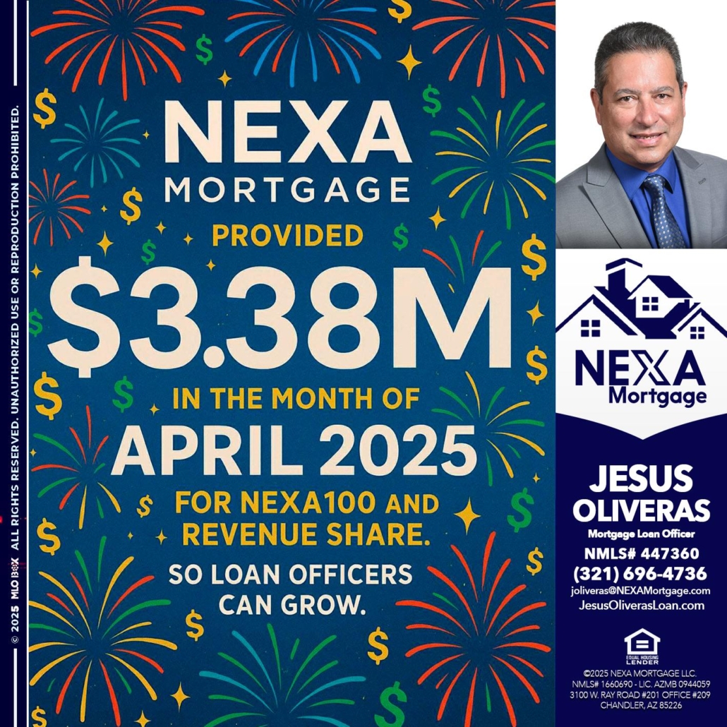 Hi, my name is Jesus Oliveras. I’m a Loan Officer with NEXA Mortgage LLC., offering personalized mortgage solutions, fast customized quotes, great rates and service with integrity.