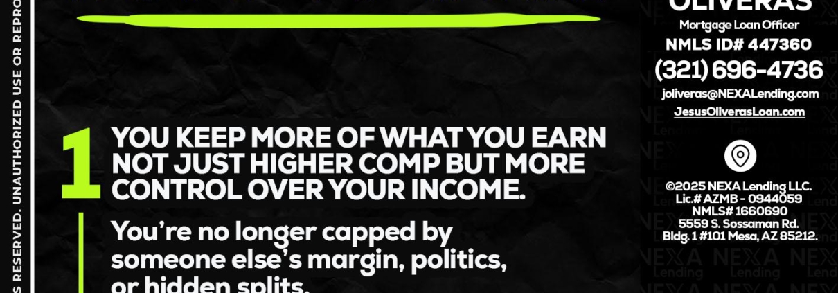 Hi, my name is Jesus Oliveras. I’m a Loan Officer with NEXA Lending LLC., offering personalized mortgage solutions, fast customized quotes, great rates and service with integrity.