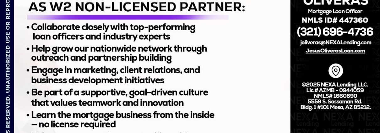Hi, my name is Jesus Oliveras. I’m a Loan Officer with NEXA Mortgage LLC., offering personalized mortgage solutions, fast customized quotes, great rates and service with integrity.