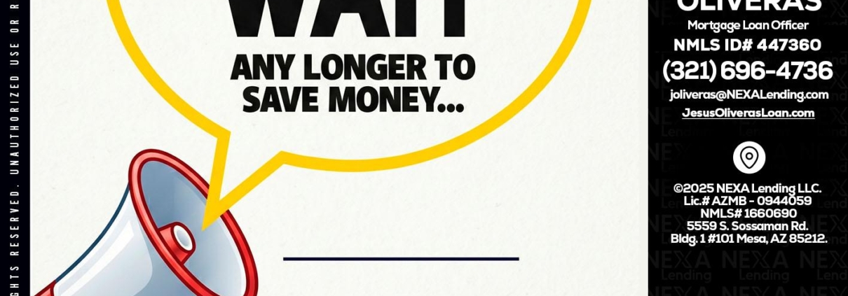 DONT WAIT - Jesus Oliveras -Mortgage Loan OfficerHi, my name is Jesus Oliveras. I’m a Loan Officer with NEXA Lending LLC., offering personalized mortgage solutions, fast customized quotes, great rates and service with integrity.