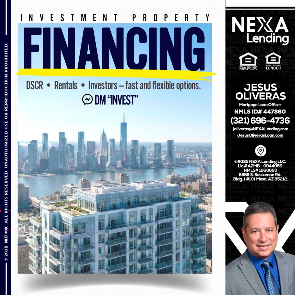 Hi, my name is Jesus Oliveras. I’m a Loan Officer with NEXA Lending LLC., offering personalized mortgage solutions, fast customized quotes, great rates and service with integrity.