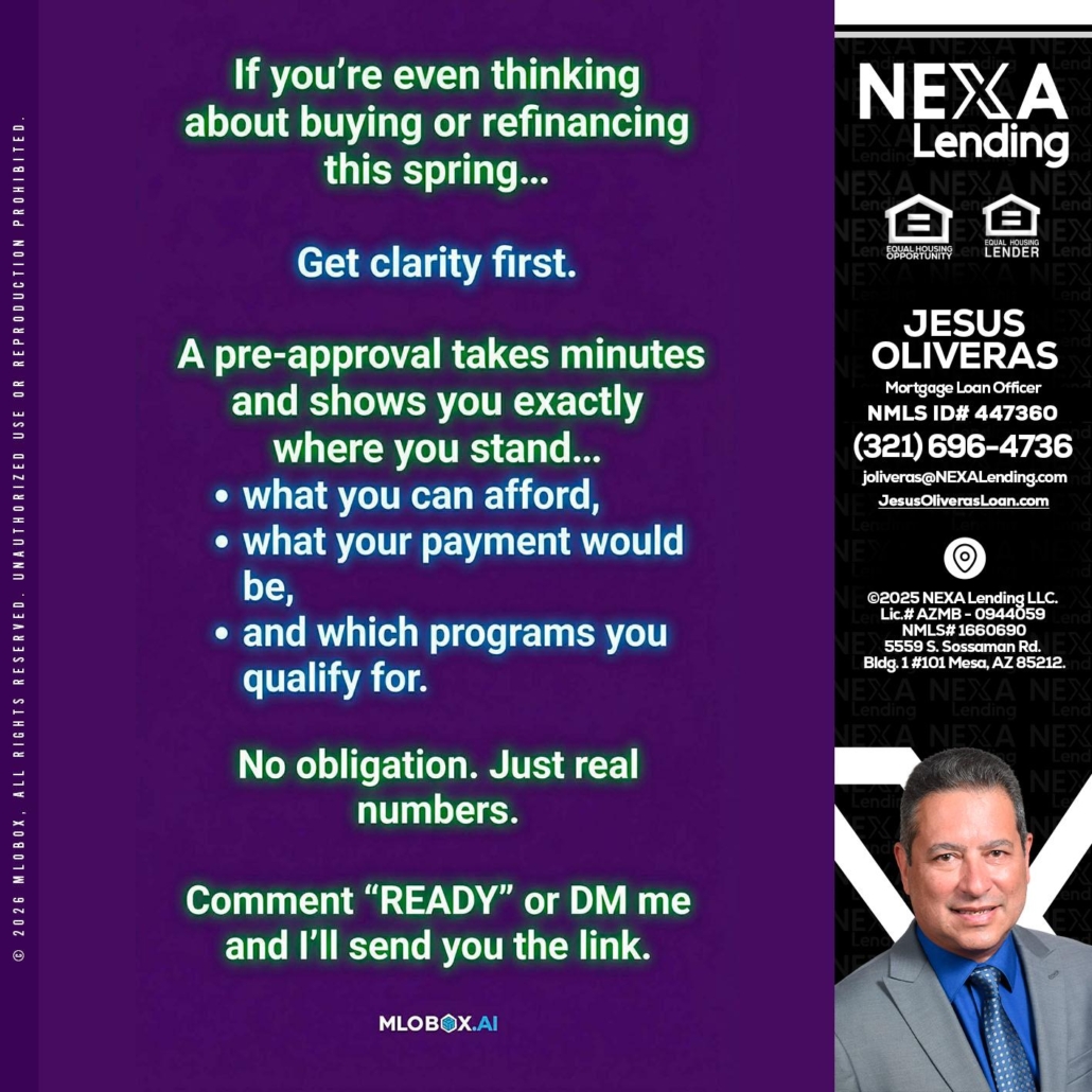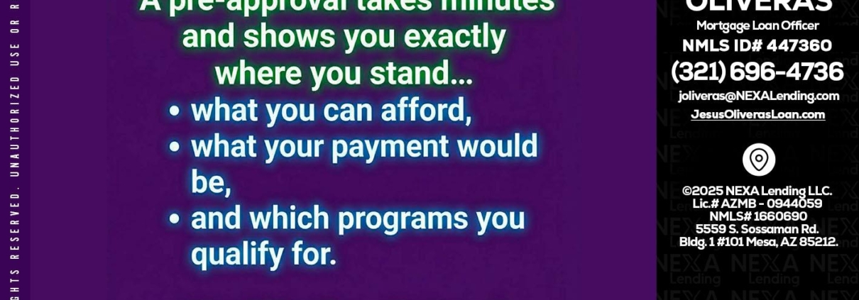 Hi, my name is Jesus Oliveras. I’m a Loan Officer with NEXA Lending LLC., offering personalized mortgage solutions, fast customized quotes, great rates and service with integrity.