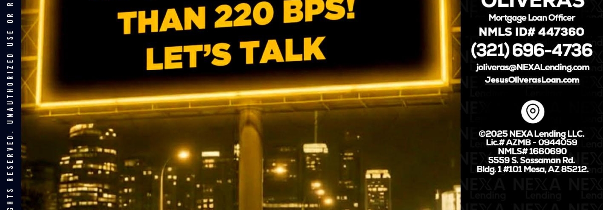 Hi, my name is Jesus Oliveras. I’m a Loan Officer with NEXA Lending LLC., offering personalized mortgage solutions, fast customized quotes, great rates and service with integrity.