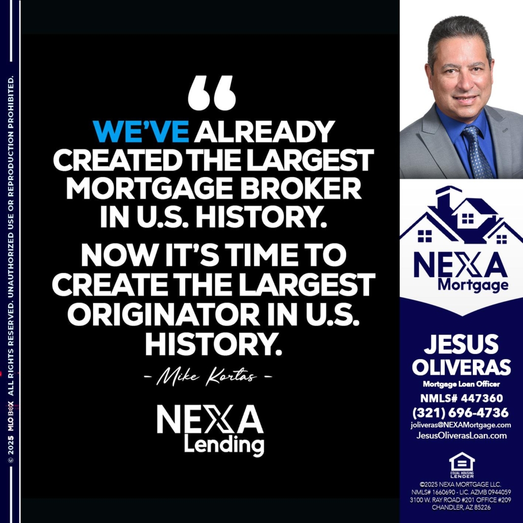 Hi, my name is Jesus Oliveras. I’m a Loan Officer with NEXA Mortgage LLC., offering personalized mortgage solutions, fast customized quotes, great rates and service with integrity.
