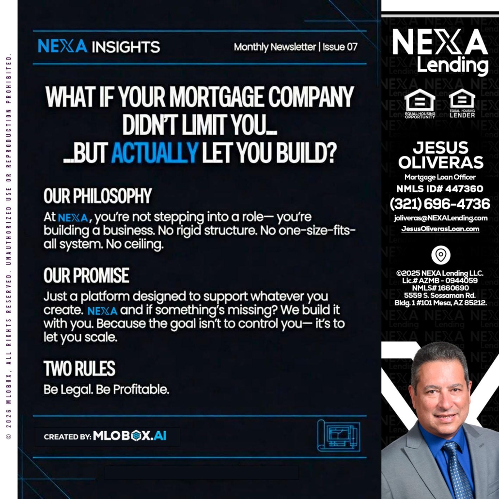 Hi, my name is Jesus Oliveras. I’m a Loan Officer with NEXA Lending LLC., offering personalized mortgage solutions, fast customized quotes, great rates and service with integrity.
