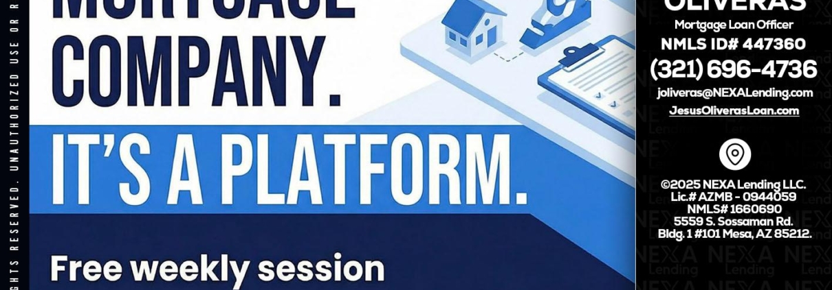 Hi, my name is Jesus Oliveras. I’m a Loan Officer with NEXA Lending LLC., offering personalized mortgage solutions, fast customized quotes, great rates and service with integrity.