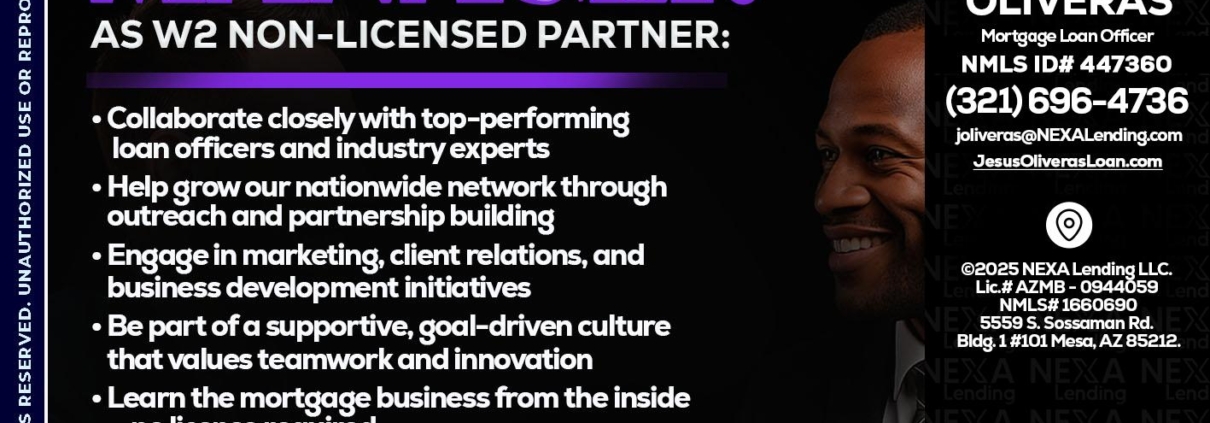 Hi, my name is Jesus Oliveras. I’m a Loan Officer with NEXA Mortgage LLC., offering personalized mortgage solutions, fast customized quotes, great rates and service with integrity.