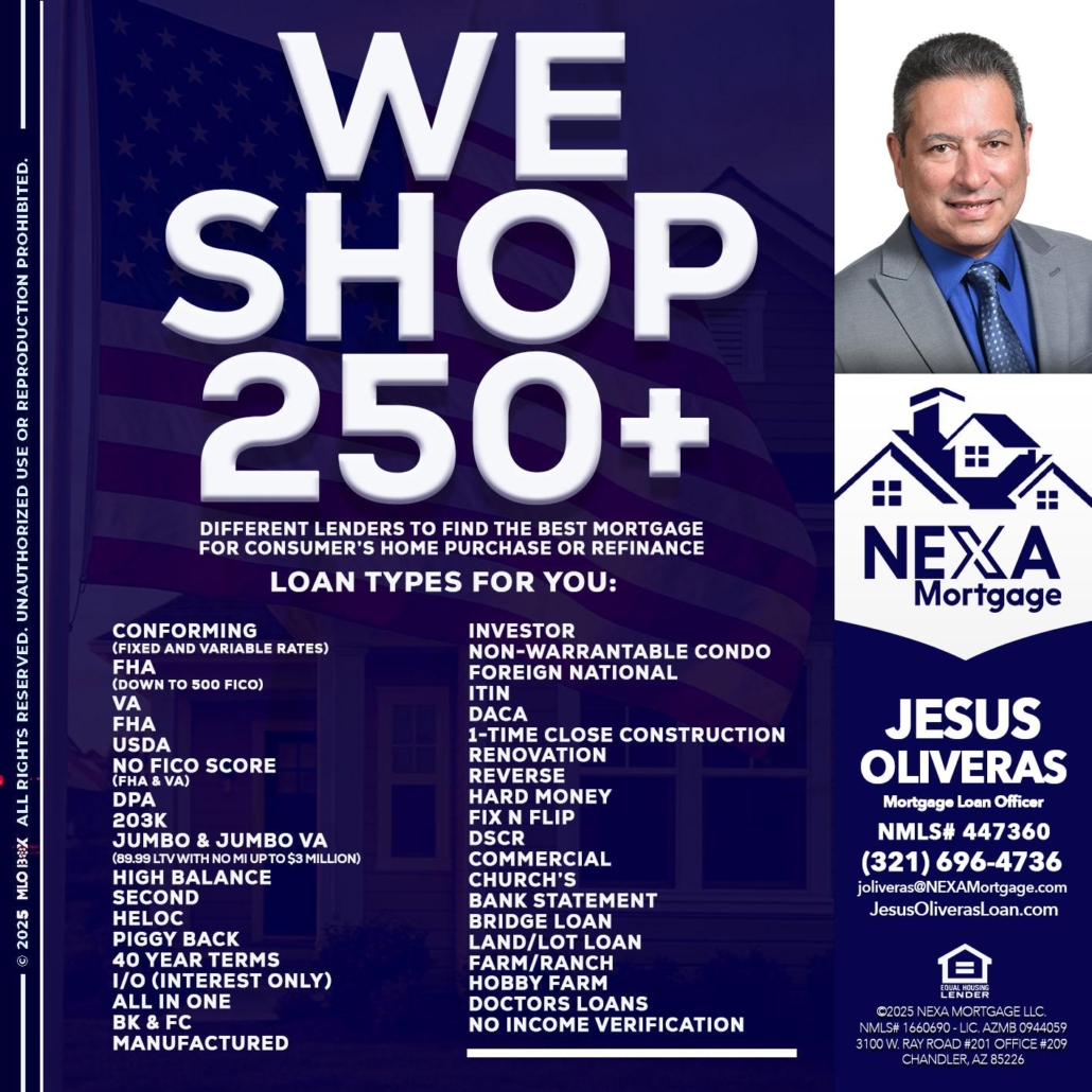 Hi, my name is Jesus Oliveras. I’m a Loan Officer with NEXA Mortgage LLC., offering personalized mortgage solutions, fast customized quotes, great rates and service with integrity.