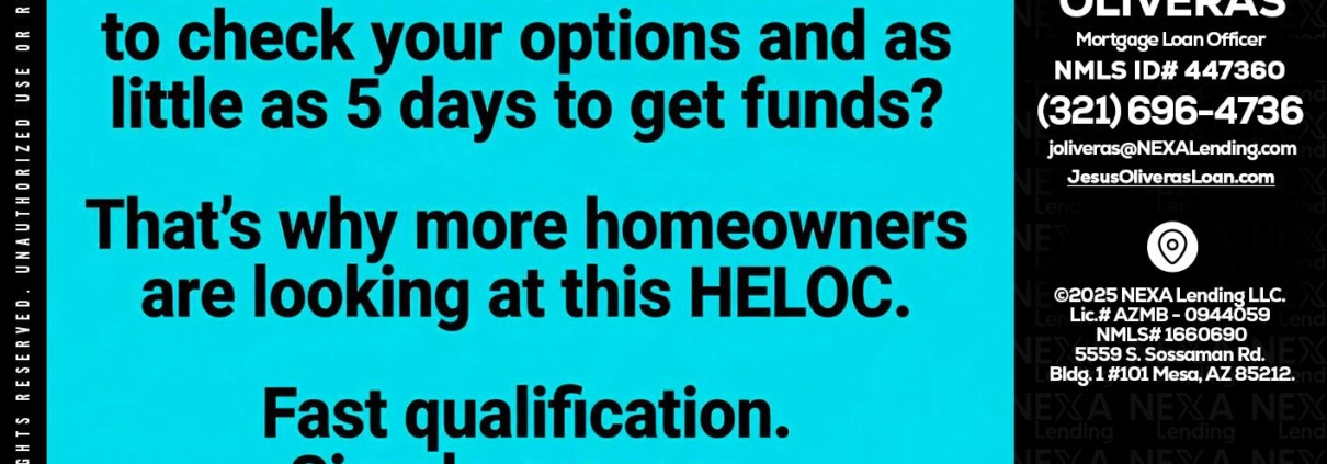Hi, my name is Jesus Oliveras. I’m a Loan Officer with NEXA Lending LLC., offering personalized mortgage solutions, fast customized quotes, great rates and service with integrity.