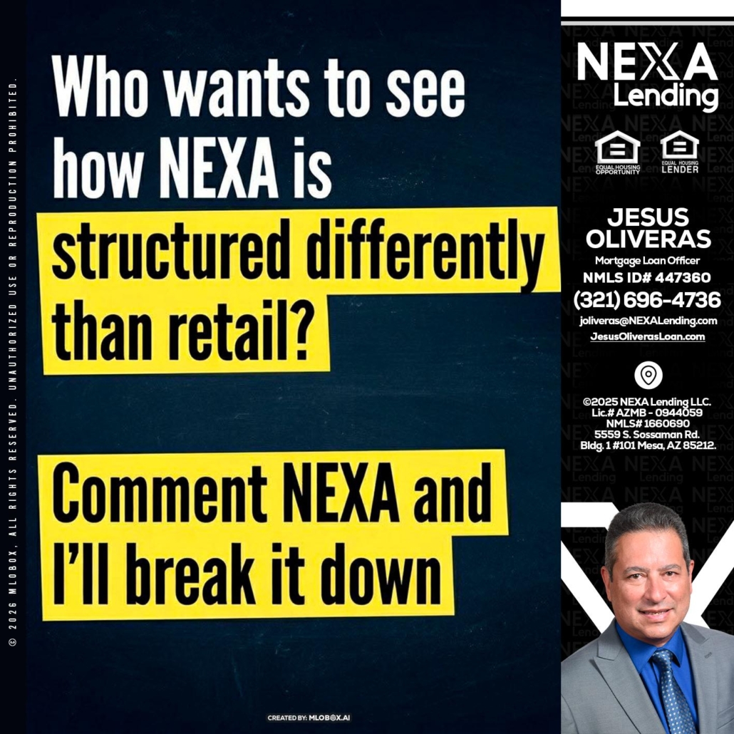 Hi, my name is Jesus Oliveras. I’m a Loan Officer with NEXA Lending LLC., offering personalized mortgage solutions, fast customized quotes, great rates and service with integrity.